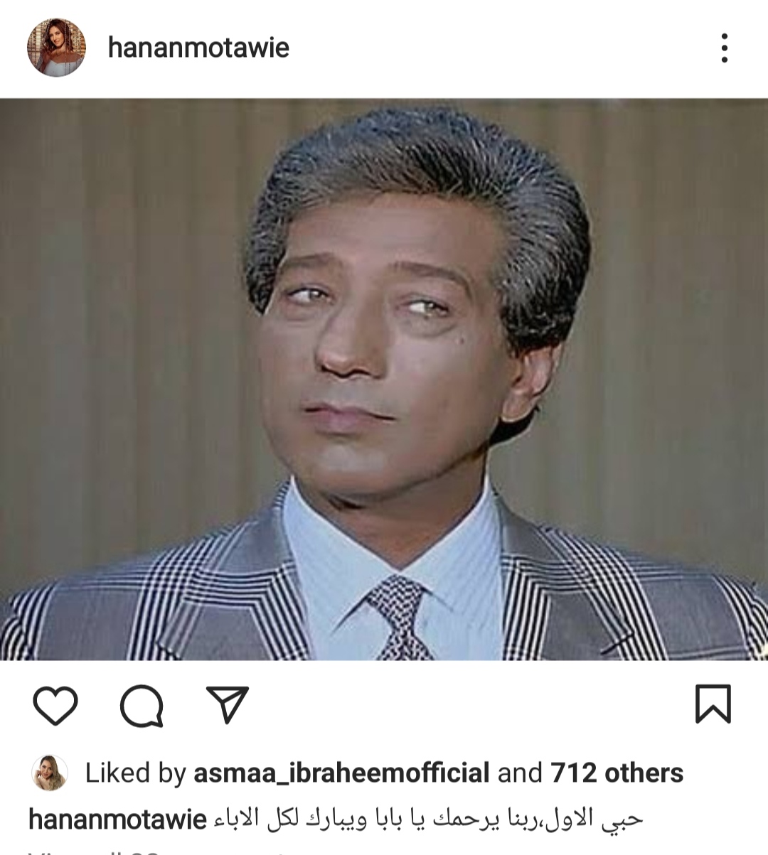 وظهر في الصورة والدها الراحل الفنان كرم مطاوع، وكتبت حنان مطاوع “حبي الأول، ربنا يرحمك يا بابا و يبارك لكل الآباء”.