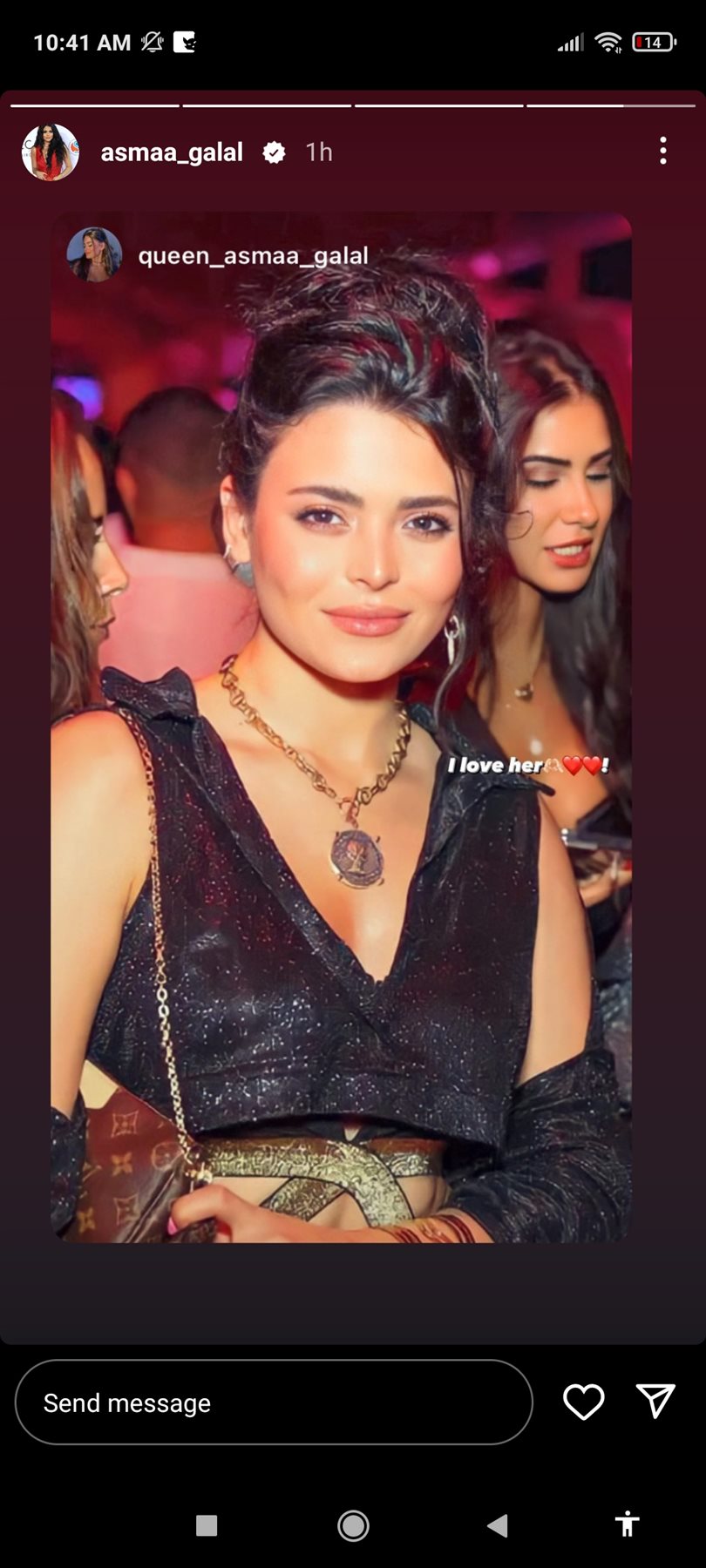 وظهرت أسماء جلال بإطلالة جذابة ناعمة بفستان أسود ، وهو ما حاز علي اعجاب متابعيها .