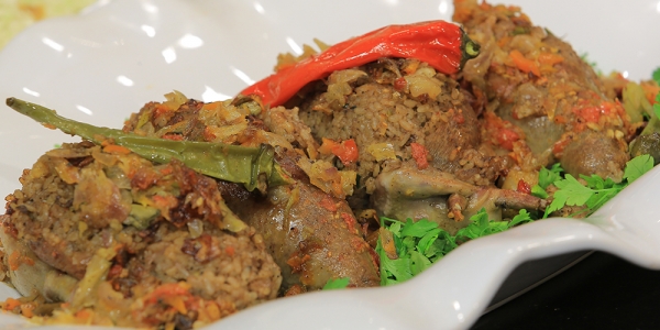 * نظفي السمان بالخل والليمون والدقيق ثم احشيه بالخليط السابق تحضيره ورشى الملح والفلفل واقلي السمان في زيت غزير ساخن ويقدم