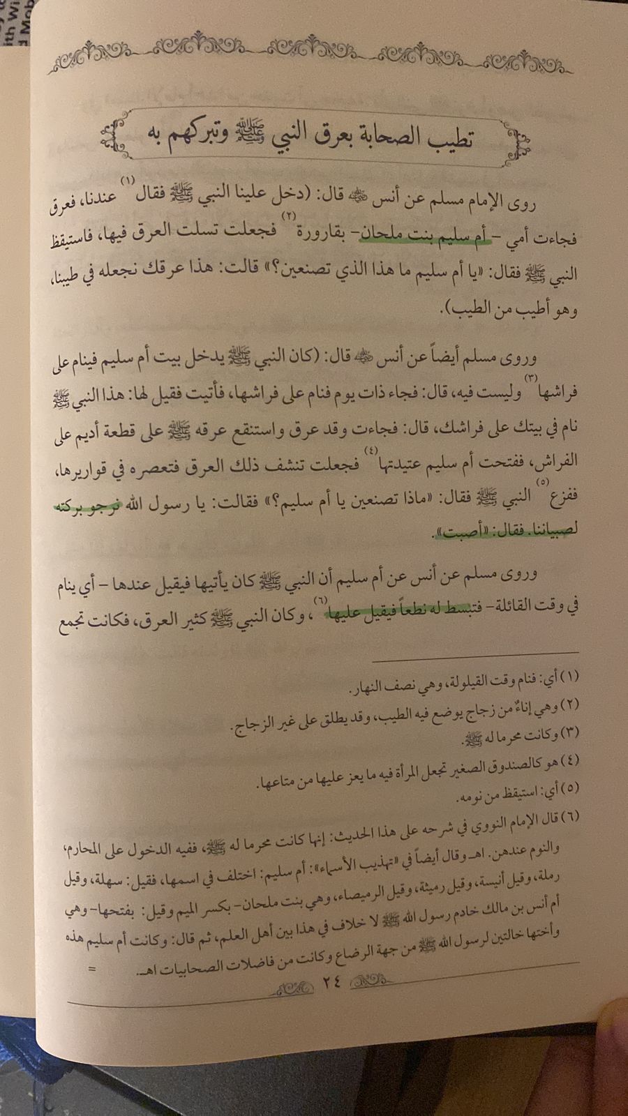 قال الشيخ أحمد الطلحي الداعية الإسلامي ، إن موضوع عرق النبي صلى الله عليه وسلم صحيح وموثق في كتب الشمائل موضحا أنه في صحيح مسلم: أن أم سليم أخذت من عرقه صلى الله عليه وسلم فقال لها يا أم سليم ماهذا، قالت عرقك نجعله في طيبنا وهو من أطيب الطيب وهذا من خصائص النبي صلى الله عليه وسلم كما نص على ذلك أهل العلم صحيح وموثق في كتب الشمائل .