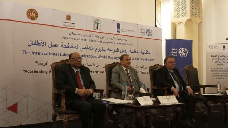 جاء ذلك خلال الاحتفال باليوم العالمي لمكافحة عمل الأطفال الذى نظمه منظمة العمل الدولية ، وافتتحه الأستاذ محمد سعفان وزير القوى العاملة ، و الدكتورة نيفين القباج وزيرة التضامن الاجتماعي ، والدكتور طارق توفيق نائب وزير الصحة والسكان ، والسيد إيريك أوشلان مدير مكتب منظمة العمل الدولية لمصر وإريتريا ومدير الفريق الفني للعمل اللائق لدول شمال إفريقيا.