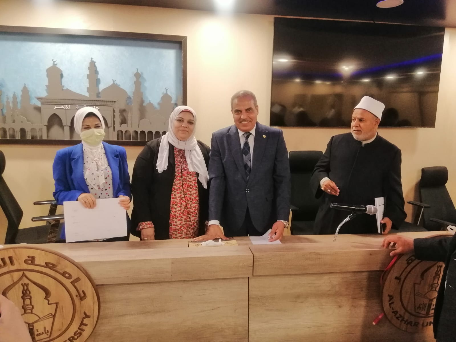 كرم الدكتور محمد المحرصاوي، رئيس جامعة الأزهر، أعضاء الشئون القانونية ممن اجتازوا الدورات التدريبية، التي نظمتها الجامعة للنهوض والارتقاء بمستوى أعضاء الشئون القانونية، بالتعاون مع وزارة العدل، من أجل تنمية المهارات الإدارية والقانونية.