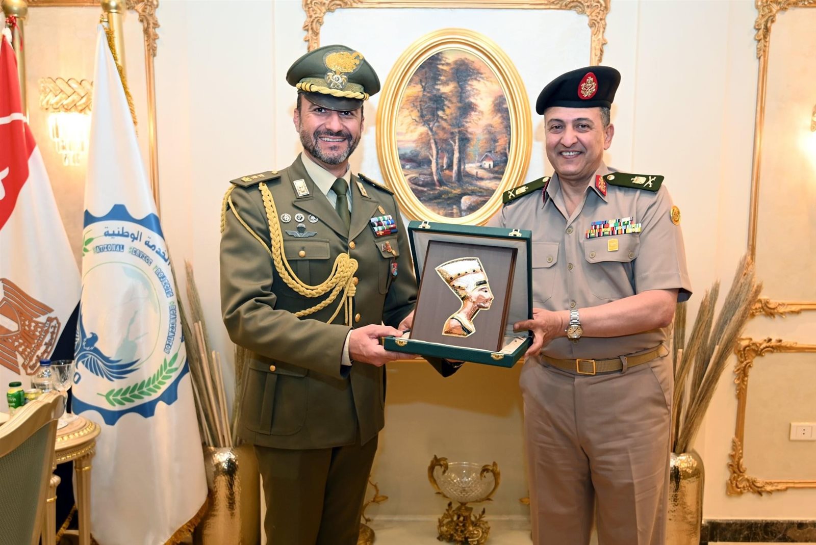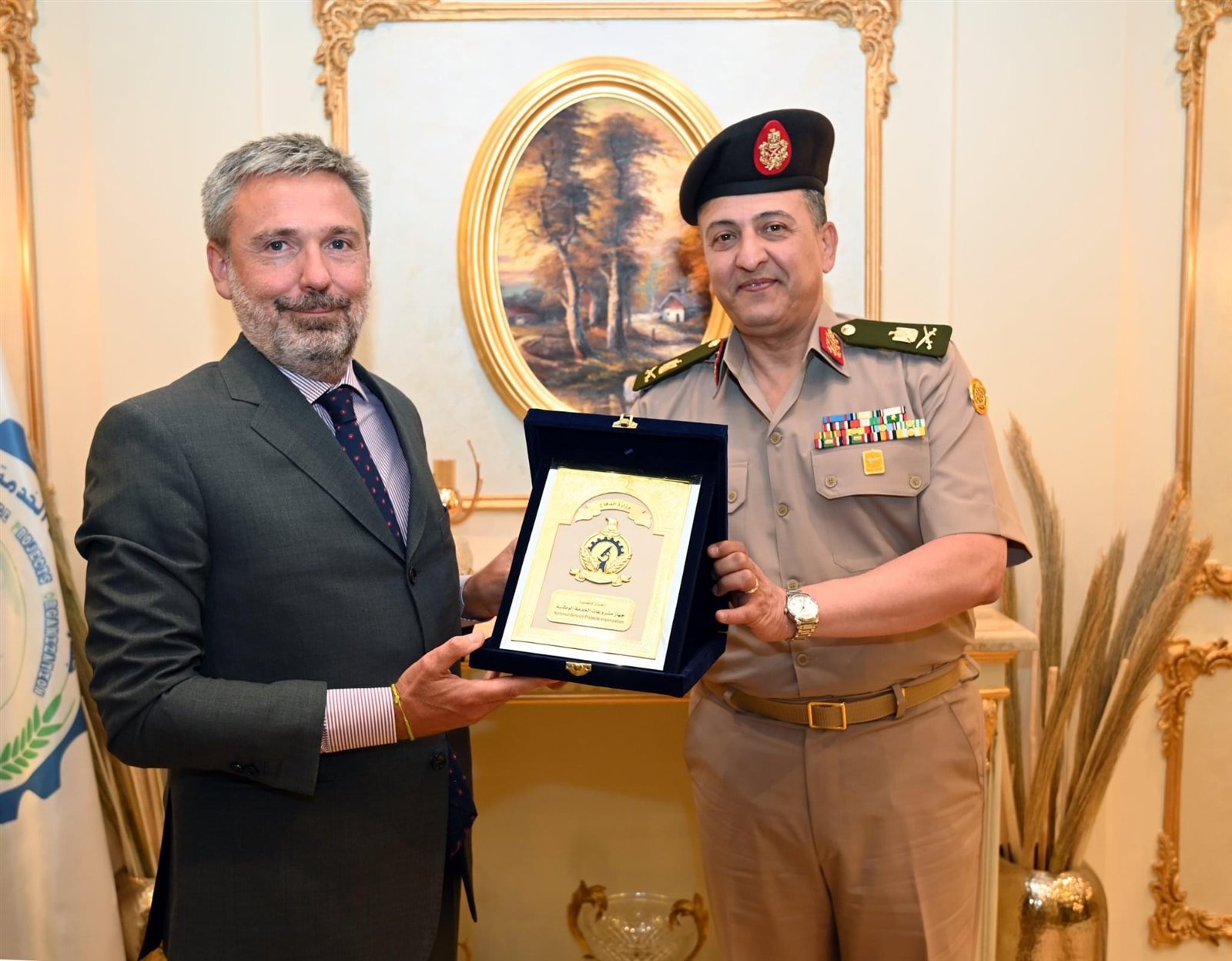 إستقبل جهاز مشروعات الخدمة الوطنية وفد إيطالي رفيع المستوى برئاسة السفير الإيطالي بمصر "ميشيل كوارونى" ، و "باولو بالميتيرى" المستشار التجاري والإقتصادى بالسفارة الإيطالية ، و "روبيرتو انامانى" الملحق العسكري بالسفارة الإيطالية.