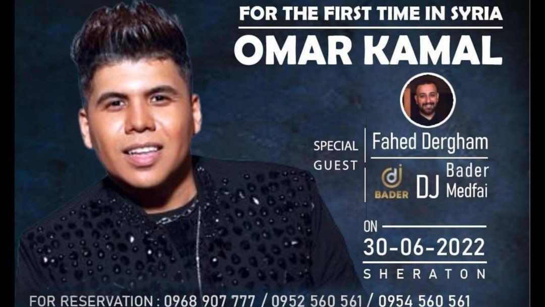 ونشر عمر كمال أفيش حفلاته وعلق قائلاً: "إن شاء الله في سوريا يوم الخميس ٦/٣٠ البحرين يوم ٧/١"، وانهالت عليه تعليقات الجمهور.