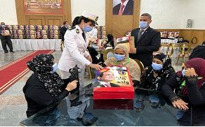 تم خلال الاحتفالية توزيع بعض المساعدات العينية من (مواد غذائية – ملابس ) لعدد من الحالات المُفرج عنهم وأسر النزلاء.