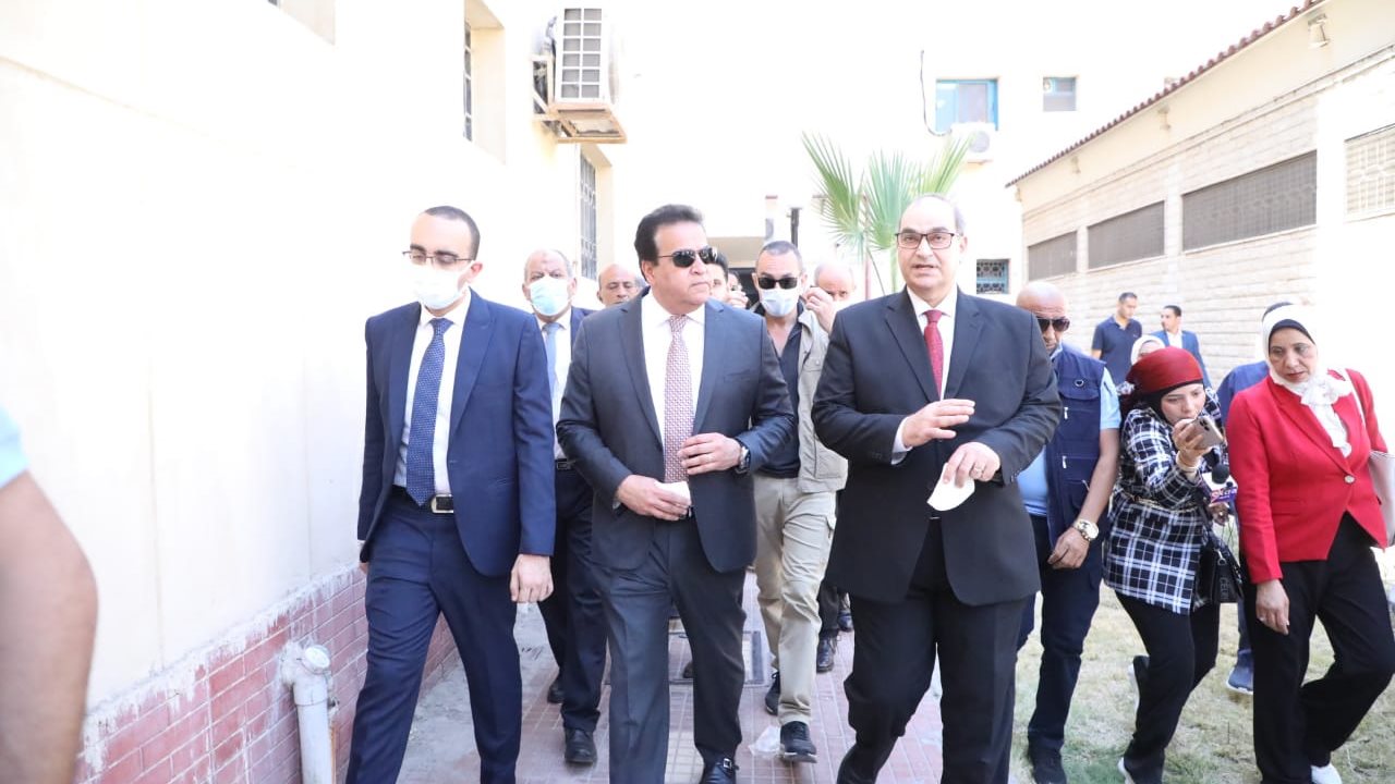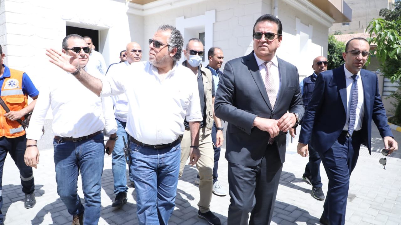 حيث تفقد الدكتور خالد عبد الغفار أعمال تأهيل ورفع كفاءة الأقسام الداخلية بالمستشفى الجامعى تمهيداً لانضمامها لمنظومة التأمين الصحي الشامل ووضع حجر الأساس لمبنى العيادات الخارجية الجديدة ، ومستشفى طب وجراحة الأطفال.