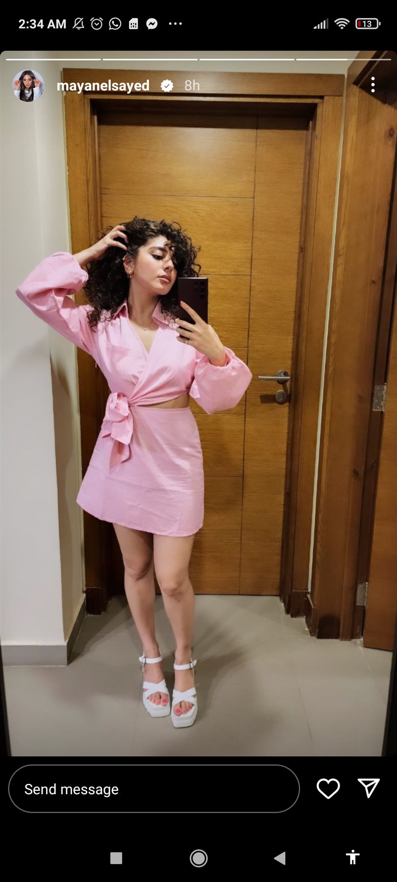 وظهرت مايان السيد بإطلالة صيفية أنيقة ، واعتمدت ترك شعرها منسدلا علي الأكتاف ، مما نال اعجاب متابعيها.