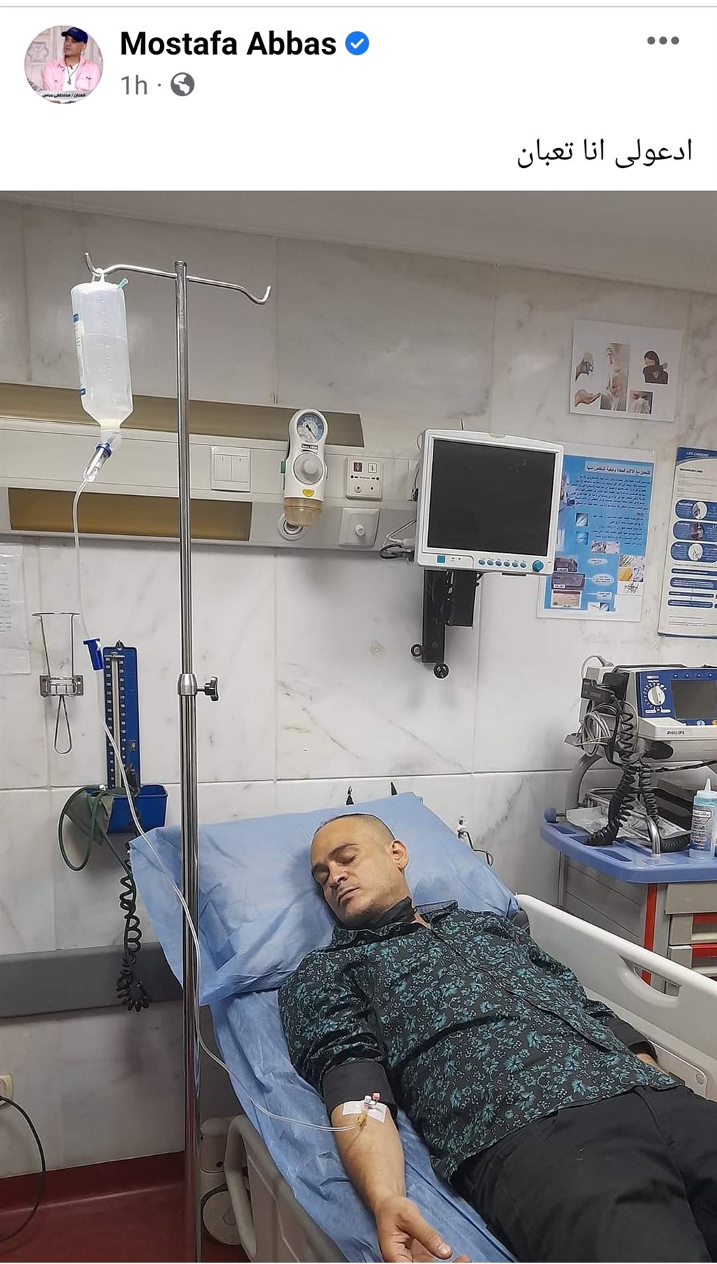 ونشر مصطفى عباس، صوره له، عبر حسابه الرسمي على فيسبوك، من داخل المستشفى، وعلق عليها: ادعولي.. أنا تعبان.