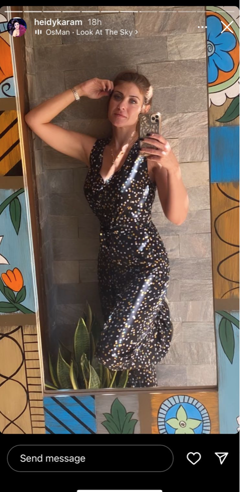وتألقت هيدي كرم بإطلالة جذابة مرتدية “سالوبت” باللون الأسود، مما حازت علي اعجاب متابعيها .