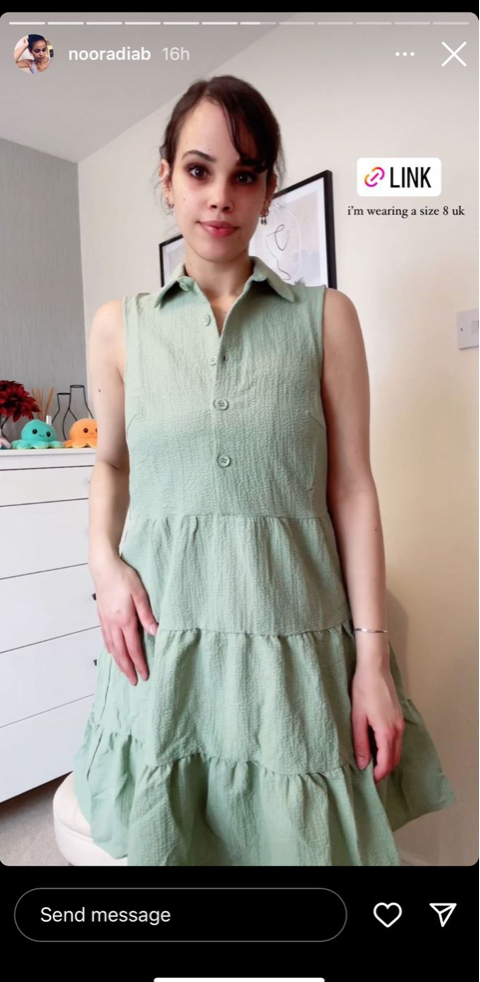 وظهرت نور دياب بإطلالة جذابة مرتدية فستان قصير باللون الاخضر مما حازت على إعجاب متابعيها .