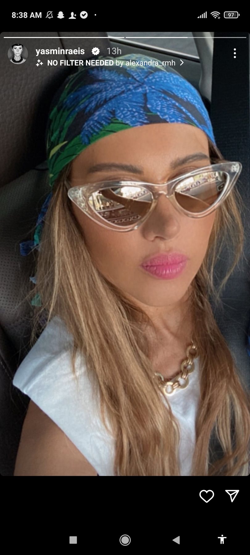 وظهرت ياسمين رئيس في الصورة بالكاجوال ،ومرتدية نضارة شمسية ، مما نال اعجاب متابعيها.