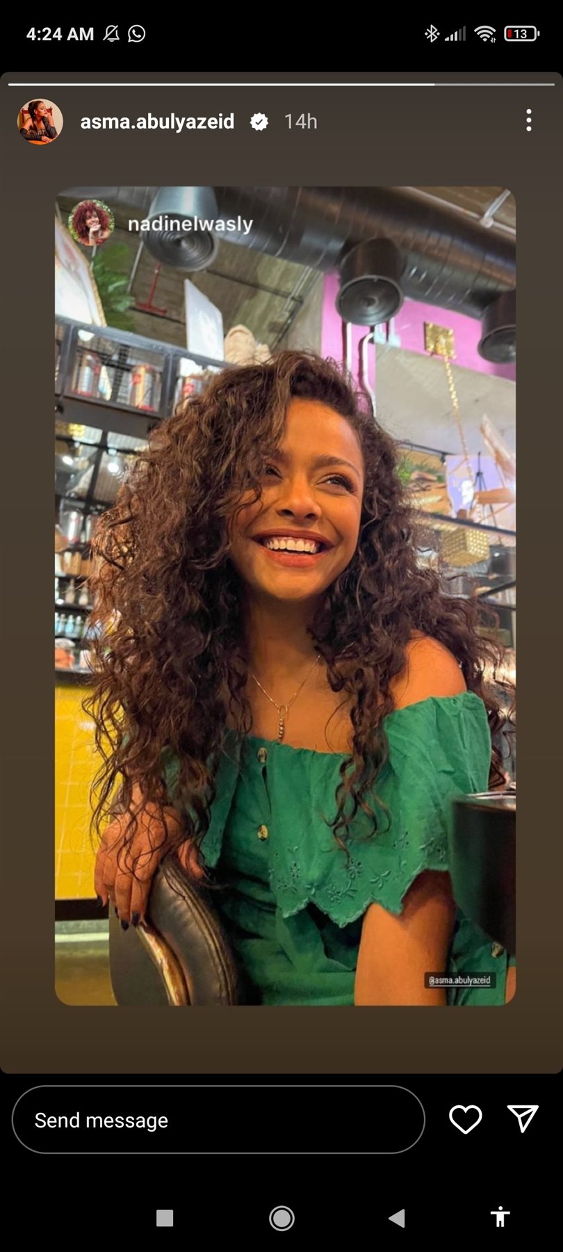 وظهرت أسماء أبو اليزيد في الصورة بإطلالة أنيقة وشعر كيرلي، مما أثار إعجاب متابعيها.