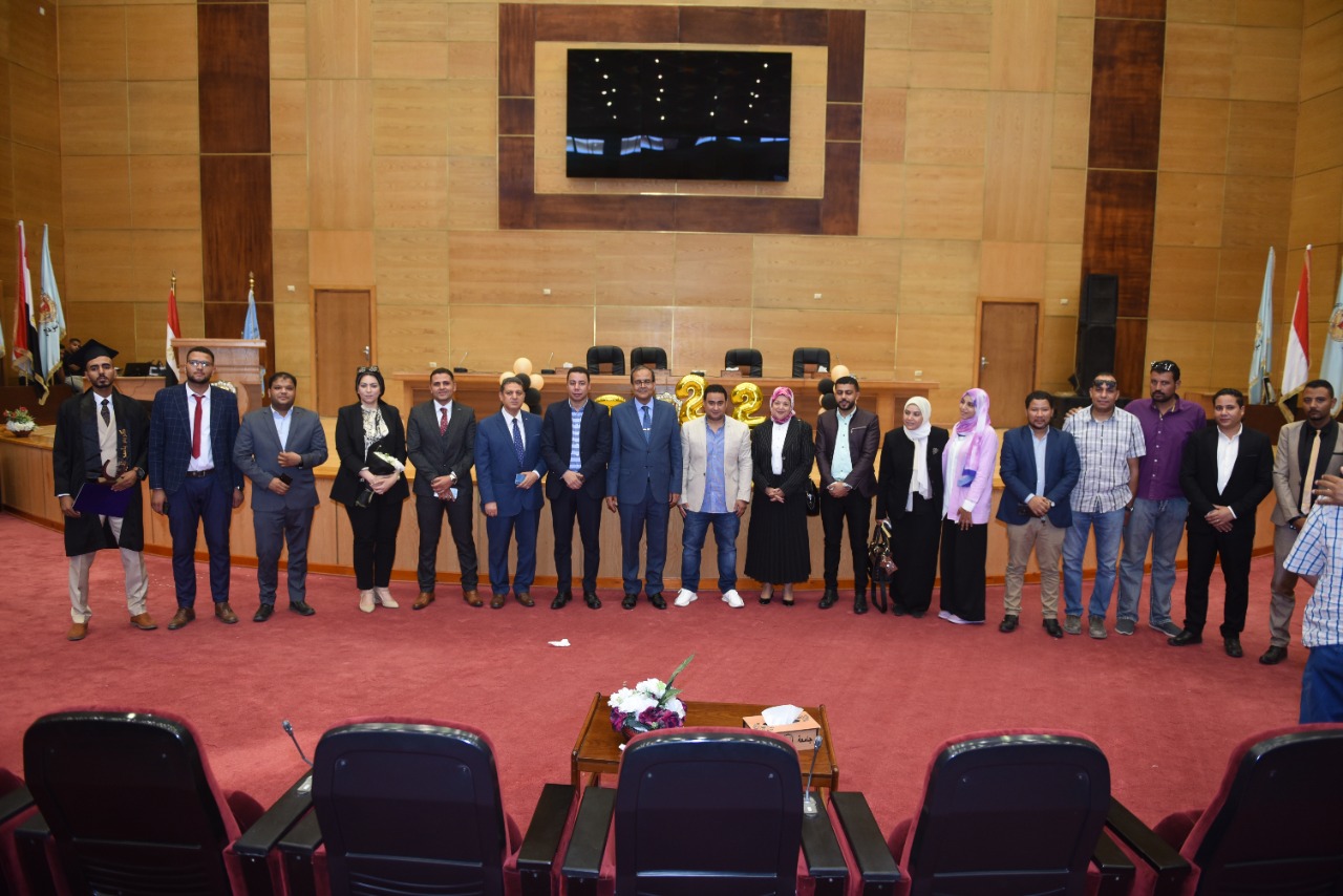 وذلك بحضور الدكتور محمود مراد وكيل الكلية لشئون التعليم والطلاب، والدكتور محمد توفيق وكيل الكلية لشئون خدمة المجتمع والبيئة، والدكتورة فاطمة الزهراء رئيس قسم الإعلام، والدكتورة سحر وهبي أستاذ متفرغ بقسم الإعلام، والدكتور صابر حارص أستاذ الاعلام بالكلية، ولفيف من الإعلاميين والصحافيين من أعضاء النقابة من خريجي قسم الإعلام، وأعضاء الهيئة التدريسية ومعاونيهم بالكلية، والطلاب الخريجين وذويهم.