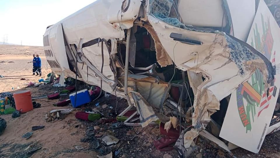 لقي 9 أشخاص مصرعهم وأصيب 44 آخرين، فيحادث تصادممروع بين أتوبيس وسيارة نقل على طريق "أسوان - أبوسمبل".