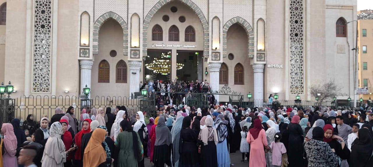 وتوافد المصلون على الساحات المجهزة بمدينة أسوان، وساحات مدينة كوم إمبو ، وأيضًا ساحات مدينة دراو، وأخرى بمدينة نصر النوبة، بجانب ساحات بإدفو، فضلًا عن العديد من المساجد.
