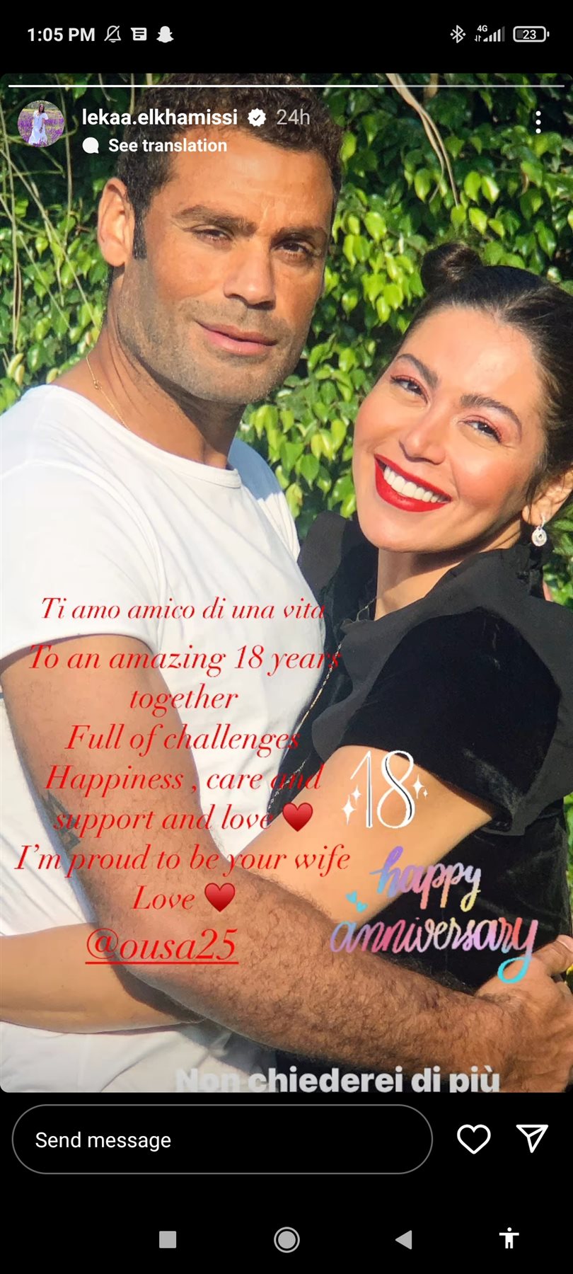 احتفلت الفنانةلقاء الخميسي، بعيد زواجها الـ 18 من اللاعب محمد عبد المنصف، عبر حسابها الشخصي على موقع تبادل الصور والفيديوهات "إنستجرام".