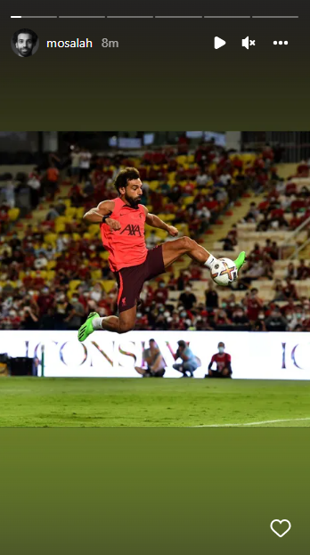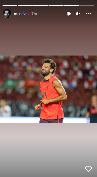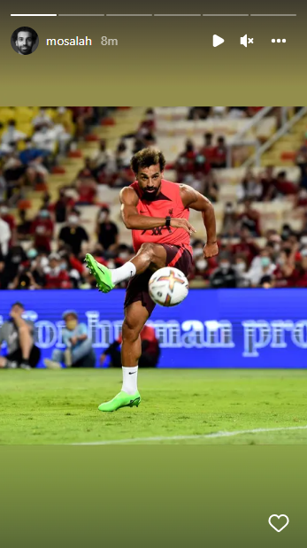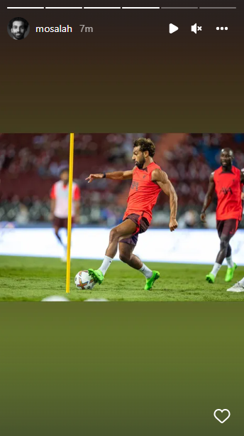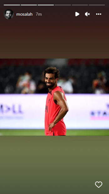 نشر اللاعب محمد صلاح، صورًا له من تدريبات ليفربول الختامية لمواجهة مانشستر يونايتد وديا، عبر خاصيه “الاستوري” بحسابه الشخصي بموقع التواصل الاجتماعي “انستجرام”.