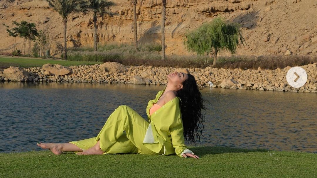 وظهرت مريهان ، في الصور بإطلالة جريئة من داخل الريف، مرتدية بدلة خضراء مكشوفه الصدر.