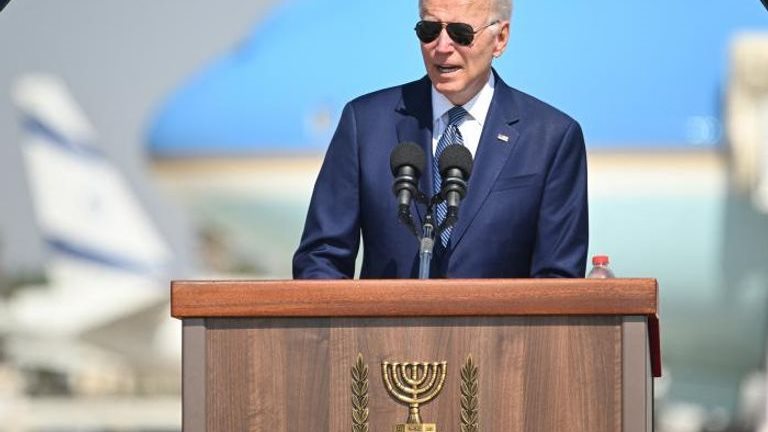 وصل الرئيس الأمريكي جو بايدن اليوم، إلى دولة الاحتلال الإسرائيلي في بداية جولته لمنطقة الشرق الأوسط والتي تضم أيضا لقاء الرئيس الفلسطيني محمود عباس في بيت لحم، والذهاب إلى السعودية وعقد مباحثات ثنائية مع الملك سلمان بن عبد العزيز وولي العهد الأمير محمد بن سلمان، ثم عقد القمة الخليجية العربية الأمريكية.