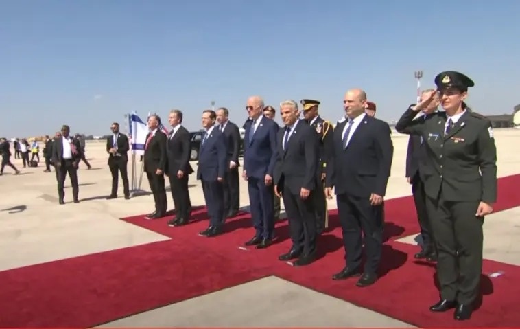 وصل الرئيس الأمريكي جو بايدن اليوم، إلى دولة الاحتلال الإسرائيلي في بداية جولته لمنطقة الشرق الأوسط والتي تضم أيضا لقاء الرئيس الفلسطيني محمود عباس في بيت لحم، والذهاب إلى السعودية وعقد مباحثات ثنائية مع الملك سلمان بن عبد العزيز وولي العهد الأمير محمد بن سلمان، ثم عقد القمة الخليجية العربية الأمريكية.