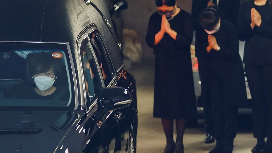 وشارك مئات الأشخاص في توديع شينزو آبي، الذي قادت آرائه القومية السياسات المحافظة للحزب الحاكم من على الأرصفة خارج معبد Zojoji في وسط مدينة طوكيو، الثلاثاء الماضي.
