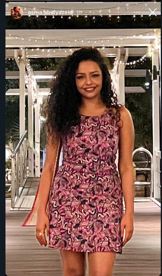 وظهرت أسماء أبو اليزيد في الصورة بإطلالة جذابة أنيقة مرتدية فستان قصير مشجر باللون الموف وشعر كيرلي، مما أثار إعجاب متابعيها.
