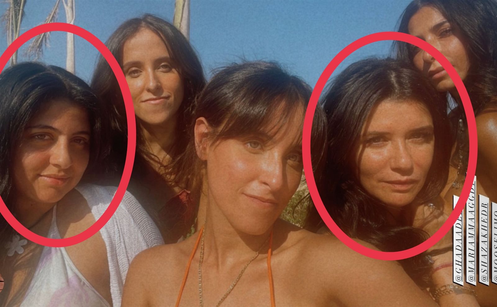 وظهرت غادة عادل في الصورة مع ابنتها مريم وصديقتان لهما، وهن بملابس البحر على الشاطئ.
