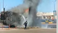 وبشكل مفاجىء وأثناء وقوف رجل الأطفاء بجوار الباب الأمامي للسيارة سقطت عليه وأصيبت قدميه بشكل خطير.