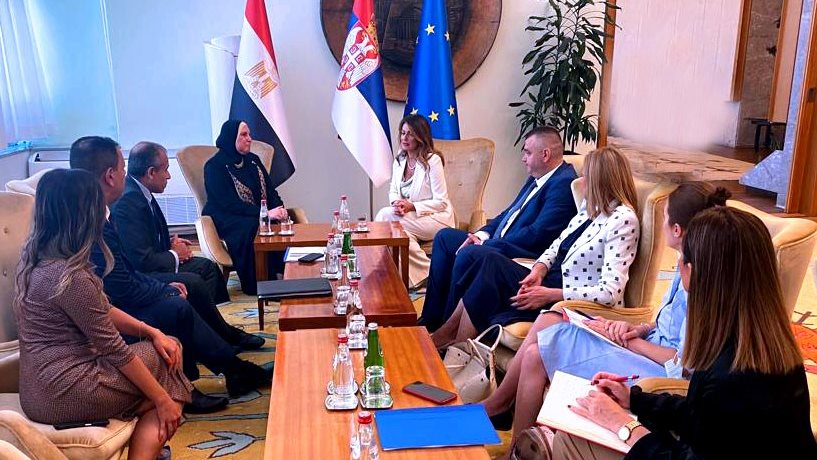 التقت نيفين جامع وزيرة التجارة والصناعة تاتيانا ماتيتش وزيرة التجارة والسياحة والاتصالات الصربية حيث تناول اللقاء تبادل وجهات النظر بشأن سبل تعزيز التعاون المشترك لمواجهة التداعيات الاقتصادية العالمية الحالية الناجمة عن الأزمة الروسية الأوكرانية وجائحة فيروس كورونا، كما تناول اللقاء سبل تنمية وتطوير العلاقات الاقتصادية المشتركة بين البلدين فى مجالات الصناعة والتجارة والسياحة خلال المرحلة المقبلة.