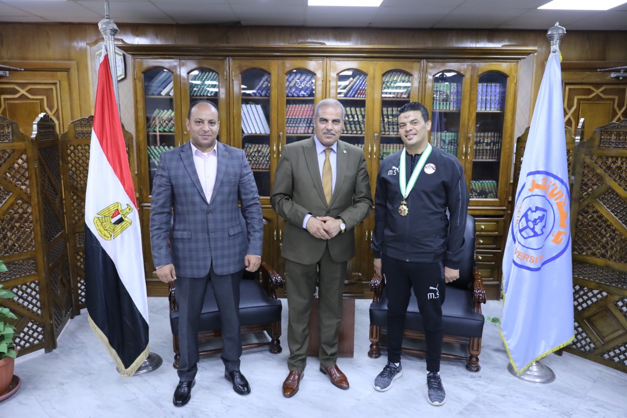 استقبل الدكتور محمد المحرصاوي، رئيس جامعة الأزهر ، ابن متميز من أبناء كلية التربية الرياضية للبنين جامعة الأزهر بالقاهرة كرمه الرئيس عبد الفتاح السيسي، رئيس الجمهورية، ومنحه وسام الجمهورية من الطبقة الأولى؛ تقديرًا لنشاطه الرياضي الكبير واخلاقه الرفيعة، وهو الدكتور محمد صلاح عبد العال خلاف، الحاصل على دكتوراة الفلسفة في التربية الرياضية.