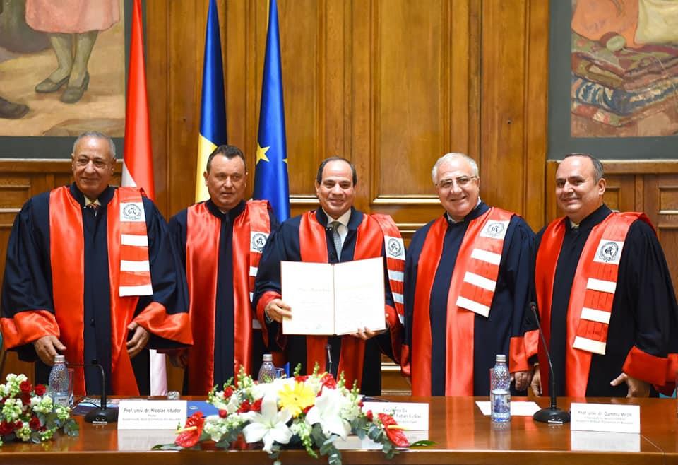 في عام 2019، حصل الرئيس السيسي على الدكتوراة الفخرية من جامعة بوخارست للدراسات الاقتصادية، وهي إحدى أهم المؤسسات التعليمية في رومانيا، وذلك في إطار زيارته التي أجرها وقتها إلى العاصمة الرومانية بوخارست.