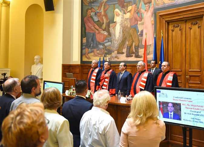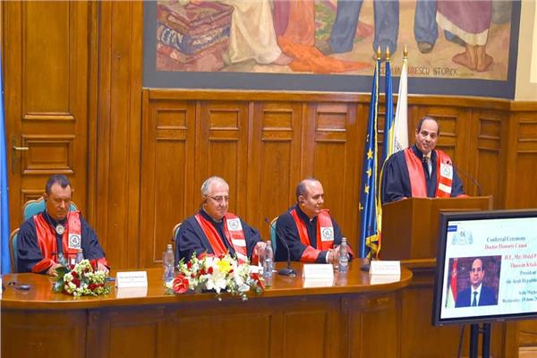وقالت جامعة بوخارست للدراسات الاقتصادية، إنها منحت الرئيس السيسي الدكتوراة الفخرية، نظرا لإطلاقه إصلاحات هيكلية عمية في المجالات الاقتصادية والاجتماعية والشروع في تشييد مشروعات قومية كبرى، وذلك في زمن قياسي في شتى القطاعات، ما ساهم في إعادة رسم خريطة التنمية والاقتصاد لمصر.