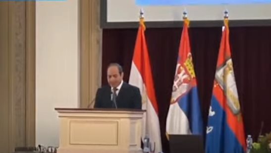 وبعد حصوله على درجة الدكتوراة، أعرب الرئيس السيسي، عن مدى حبه وامتنانه لمنحة الدكتوراه الفخرية من جامعة بلجراد العريقة، قائلا: "من دواعى الفخر والسعادة أن أخاطبكم اليوم من فوق هذا المنبر العريق، ووسط كوكبة من أساتذة وطلاب صربيا الواعد، التى ترجع نشأتها إلى أكثر من 200 عام، وأن الفضل يعود إلى مساهمة جامعة بلجراد الفعالة وخروج العديد من الطلاب النوابغ من خلالها فى الحياة الثقافية والاقتصادية والسياسية لدولة صربيا".