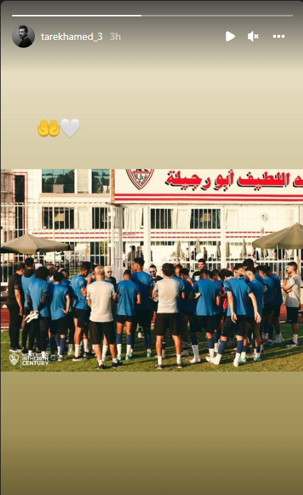 ونشر طارق حامد عبر "إستورى إنستجرام" صورة للاعبي الزمالك من داخل ملعب ميت عقبة مع تعبيرات الدعاء في إشارة لمساندتهم أمام الأهلى في مباراة اليوم.