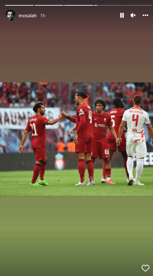 شارك محمد صلاح نجم ليفربول والمنتخب ، متابعيه بصور له من مباراة الفريق أمام لايبزيج الألماني، وذلك من خلال خاصية استورى عبر حسابه بموقع “انستجرام”.