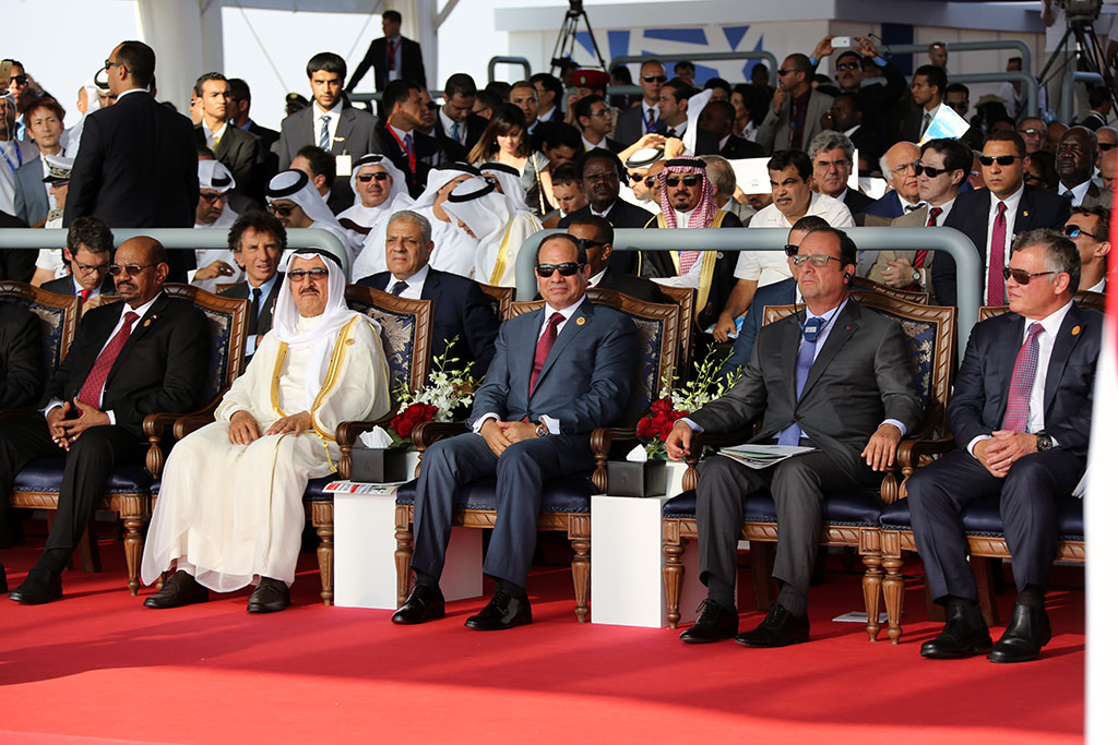 - في عام 2015 حضر الرئيس الفرنسي، بصفة ضيف شرف في تدشين قناة السويس الجديدة.