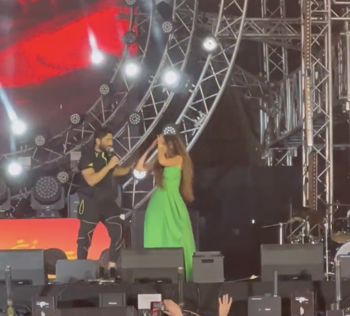 صعدت الفنانة هنا الزاهد على المسرح مع تامر حسني بعد نجاح فيلمهما "بحبك" في موسم عيد الأضحى، واستقبلها الجمهور بتحية كبيرة.