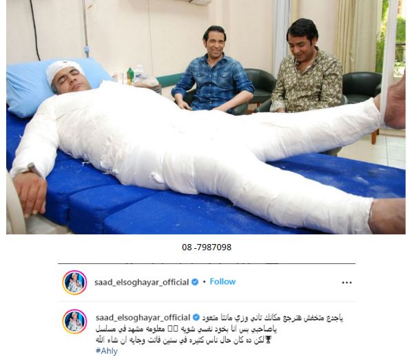 للوهلة الأولى، ينخلع قلبك عند مشاهدة الفنان المحبوب بيومي فؤاد طريحًا للفراش بينما يغطي الجبس والأربطة الطبية كل أنحاء جسده، لكن لا يقطع صدمتك سوى وجه سعد الصغير الضاحك بجانب بيومي فؤاد.. فما القصة؟