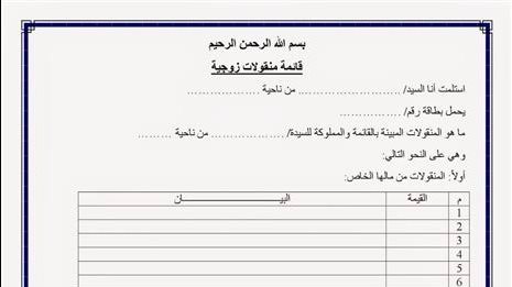 وقائمة المنقولات الزوجية عبارة عن وثيقة تتم كتابتها عند عقد الزواج لإثبات حق المرأة وتدوين كل الأجهزة والمقتنيات التى اشترتها داخل المنزل.