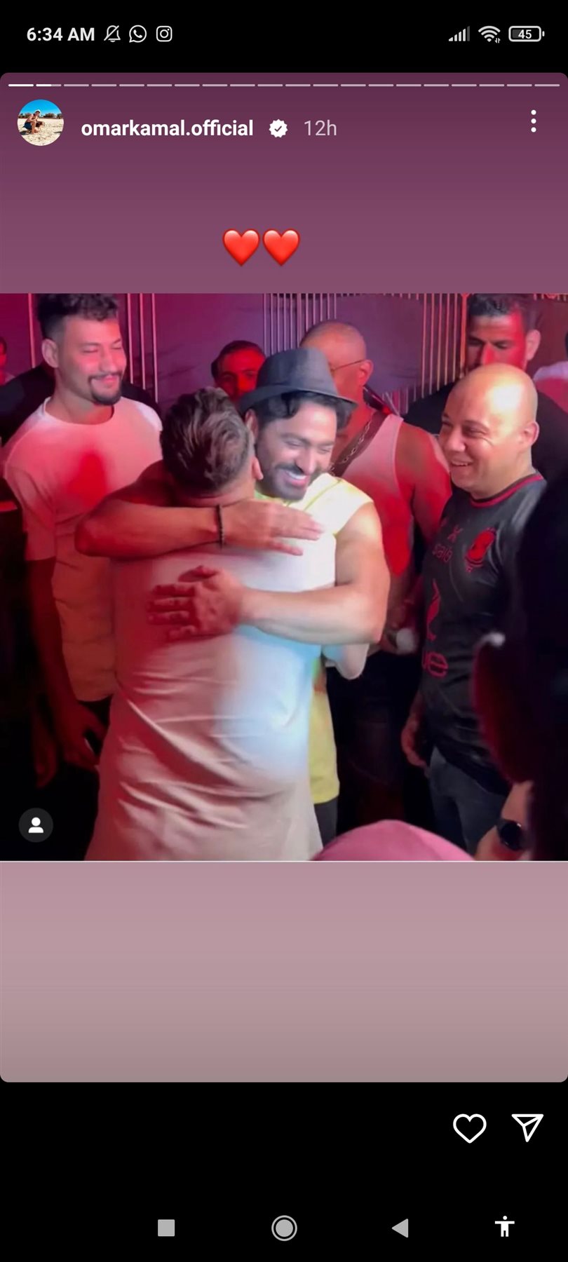 وظهر عمر كمال في الصورة برفقة الفنان تامر حسني، مما نال اعجاب متابعيه.
