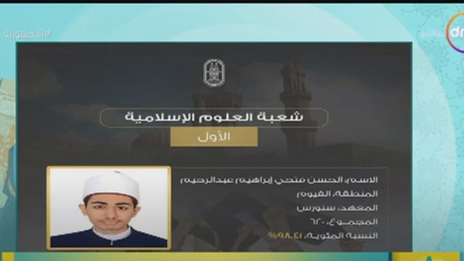 وحصلت ريم عيسى عبد القادر البدوي، الطالبة بمعهد فتيات سمنود، بمنطقة الغربية الأزهرية، على المركز الأول على المكفوفين بمجموع (٦١٧) درجة بنسبة (٩٧.٩٤٪)، كما حصل الحسن فتحي إبراهيم عبد الرحيم، الطالب بمعهد سنورس بمنطقة الفيوم الأزهرية، على المركز الأول على شعبة العلوم الإسلامية بمجموع (٦٢٠) درجة بنسبة (٩٨.٤١٪).