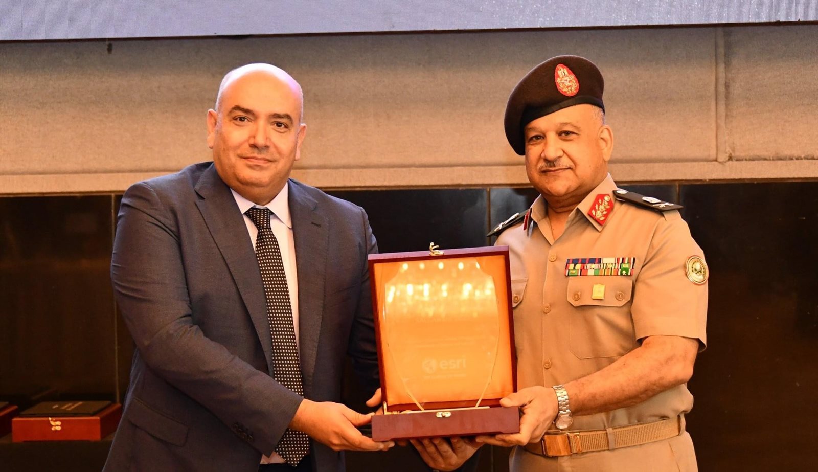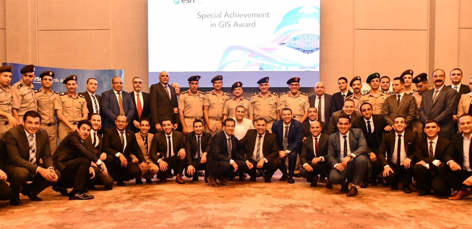 وخلال الإحتفالية التى نظمها معهد نظم الأبحاث البيئية العالمي "إيزرى" ألقى اللواء أح عبدالسلام أحمد شفيق رئيس مجلس إدارة الشركة المصرية للتعدين وإدارة وإستغلال المحاجر والملاحات كلمة نقل خلالها تحيات وتقدير الفريق أول محمد زكى القائد العام للقوات المسلحة وزير الدفاع والإنتاج الحربى، والفريق أسامة عسكر رئيس أركان حرب القوات المسلحة للحضور.