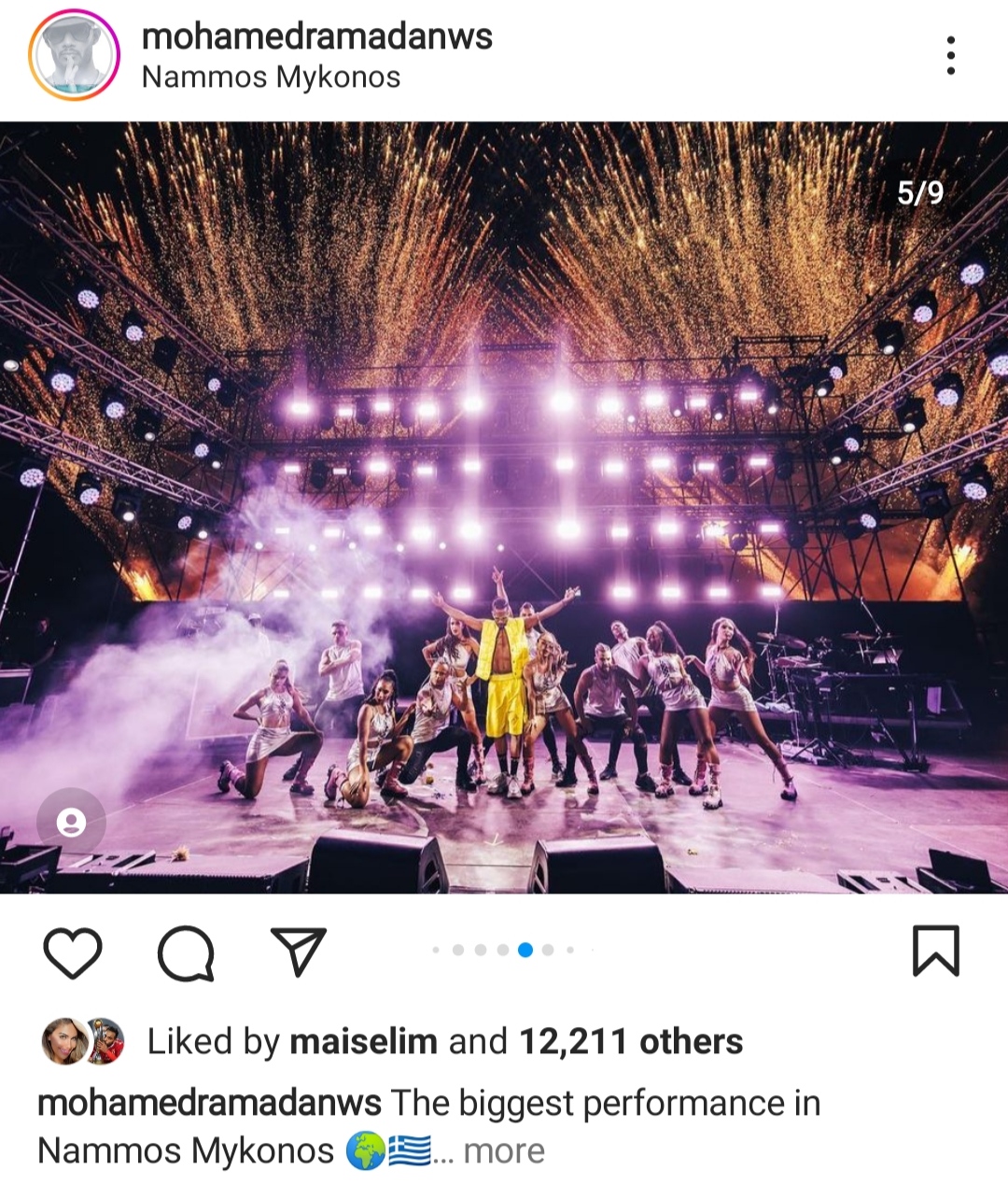 وظهر محمد رمضان في الصور من حفله الأخير باليونان ، مما نال إعجاب متابعيه.