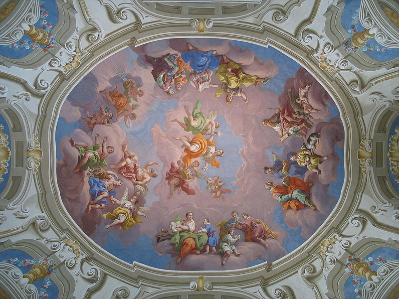 إحدى اللوحات الجدارية السبعة التي رسمها بارتولوميو ألتومونتي في عامه الثمانين للمكتبة. عبارة عن قصة رمزية عن عصر التنوير، تُظهر أورورا ، إلهة الفجر ، مع عباقرة اللغة في قطارها الذي يوقظ مورفيوس، إله الحلم ، في إشارة للإنسان.
