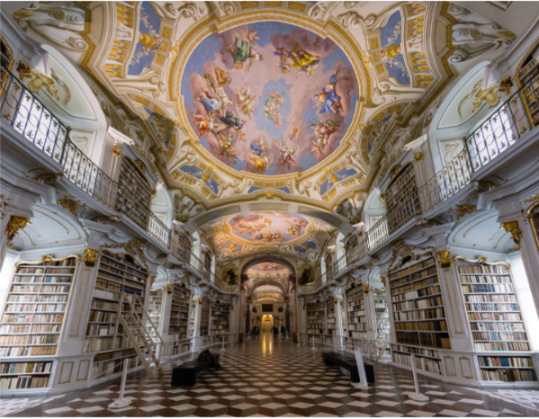 تضم أقدم مكتبة دير في العالم أكبر مكتبة رهبانية في العالم، بالإضافة إلى مجموعة علمية عريقة. تشتهر بالعمارة والفن والمخطوطات الباروكية - برز الباروك كأسلوب فني في أوائل القرن السابع عشر في إيطاليا".