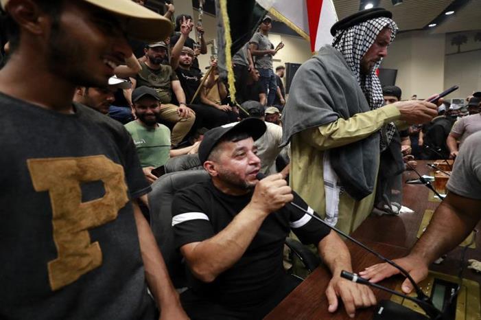 وشهد العراق أمس السبت، يومًا متوترًا وعاصفًا بعد اقتحام المتظاهرين البرلمان للمرة الثانية خلال أيام، وجلسوا على المقاعد الخاصة بالمشرعين.