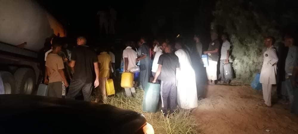 وأضافت الصحيفة الليبية أن عددا من المواطنين هرعوا إلى شاحنة الوقود، وقاموا بتعبئة جالونات منها وأثناء التعبئة انفجرت الشاحنة واندلعت بها النيران.