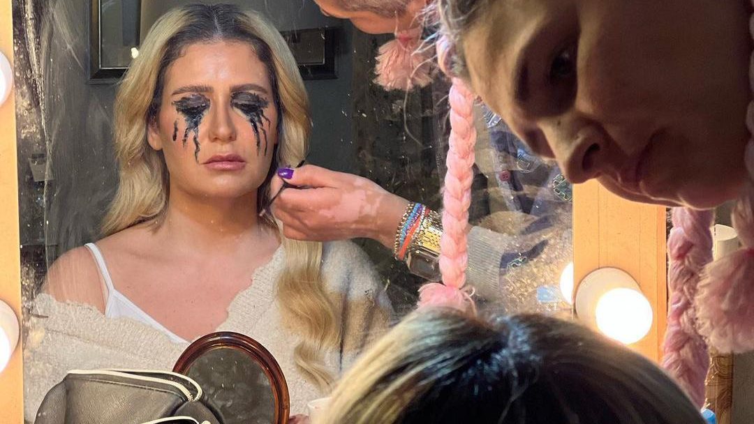 وظهرت هنا شيحة في الصورة، بإطلالة جذابة تاركة خصلات شعرها منسدلا علي كتفيها ، واعتمدت مكياجا أبرز ملامحها.