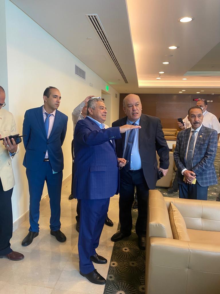 كما تم تفقد غرفة التحكم بكاميرات المراقبة بمبانى الركاب والتأكد من كفاءة تشغيلها والمشاية الكهربائية الجديدة التى تصل بين الجراج متعدد الطوابق ومبنى الركاب2 حيث تصل الطاقة الاستيعابية للجراج 3620 سيارة .