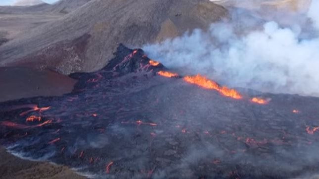 والصدع الواقع على بعد حوالي 40 كيلومترا من ريكيافيك نفث حمما تتحول إلى صخور يتصاعد منها دخان مع انخفاض حرارة المقذوفات وينبعث منه دخان يميل إلى الأزرق.